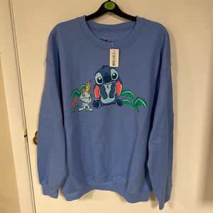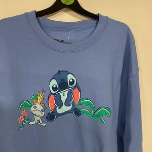 Disney Lilo and Stitch sweater / crewneck with Stitch and Scrump on the front. Beautiful blue background with the graphic in the middle.