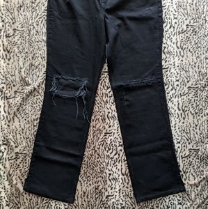NWT Black jeans from Free People. Five pocket, zipper closure, slight boot cut with slits at bottom, distressing. Never worn