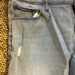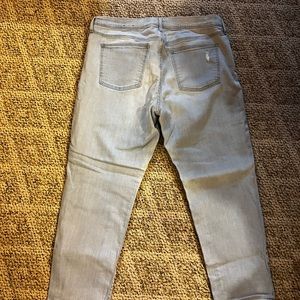 Gap women’s size 34(18) Girlfriend jeans in light wash. Only worn once. Comes from smoke free home. Factory destruction. Inseam 27”. Excellent used condition.