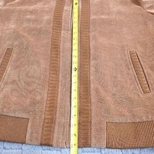 Men's zip-up sports jacket size L in excellent condition. Jacket is deep tan thick layered corduroy with latte trim. Please photos for additional details and measurements.