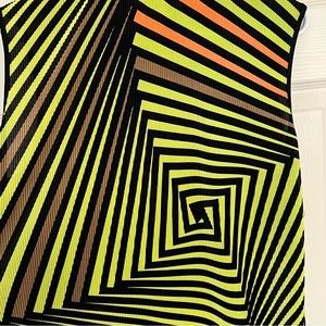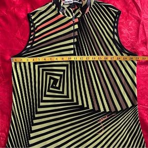 What a showstopper ! Featuring lime green, orange, black and brown crinkle fabric it makes a statement on the course or court.