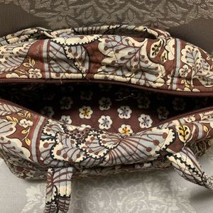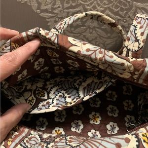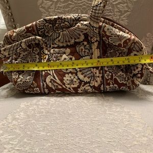Brown and blue floral Very Bradley purse is pre-owned and measure 11in W x 6 in H and straps are 12ins