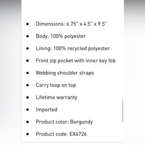 Front zip pocket with inner key fob