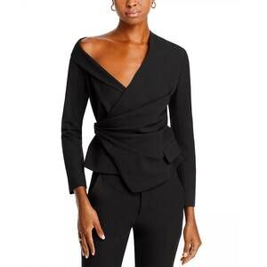 Bronx and Banco's Fire minidress features a draped one-shoulder bodice. A single oversized bell sleeve with metallic faux feather trim completes the look.