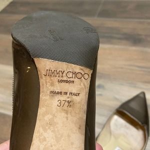 Jimmy Choo Size 37.5 US 7.5 Patent Leather Pumps Heels Metallic Gray Pointed Toe