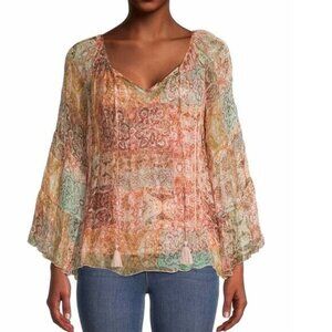 It is green, painted with brownish spots as faux distressing or verdigris.