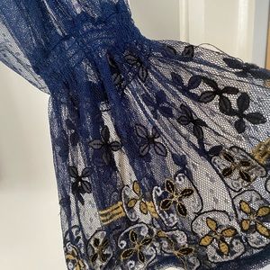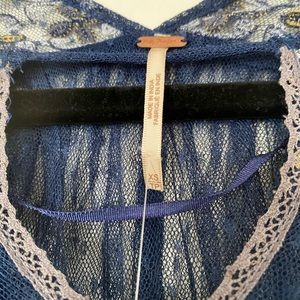 FREE PEOPLE sheer boho top NWT. Double layered fabric, Flowy sleeves with lite elastic wrists. Beautiful embroidery on shoulders & sleeve bottoms. Button loop back closure.