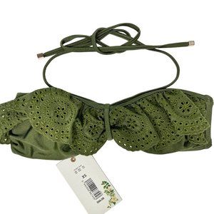 NWT Chelsea & Violet XS Ollive Green Eyelet Ruffle Tie Neck Bikini Swim Top