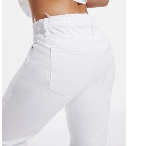 #64 NWT Good American Good Girlfriend Ripped High Waist Ankle Jeans in W…