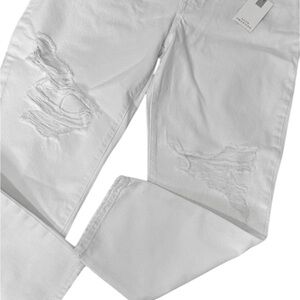 Freshen up white-jeans season in this ankle-grazing pair authenticated with swaggy slashes at the knees.