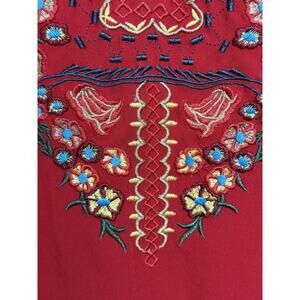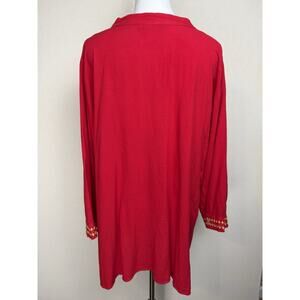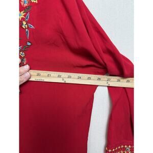 64 Sixty-Five XXL Red Embroidered Top Boho Blouse V-neck Tunic Long Full Sleeves