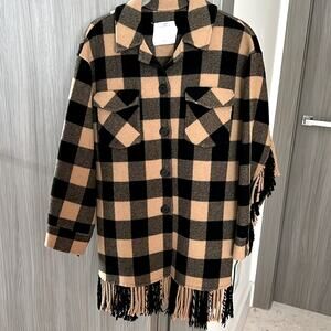 $640 SANDRO Feny Coat Jacket Shacket barn coat plaid FR 40 / US LARGE