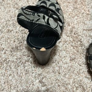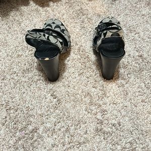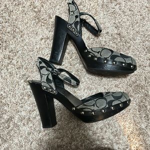 Coach heels small platform size 8. Small chip on the back of the right shoe hidden however will be hidden by the heel of your foot when worn
