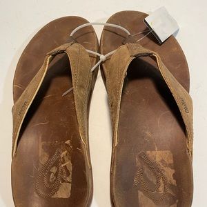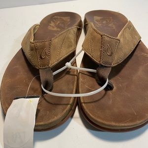 Sold OluKai Men’s Pikoi Leather Flip Flops Sandals Ray Brown Size 8 US $100 NEW