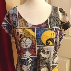 The Nightmare Before Christmas Fitted V-Neck, size XL, EUC. Purchased at Disneyland, 2014. I can't tell from tag which fabric blend this top is.
