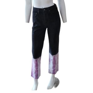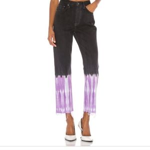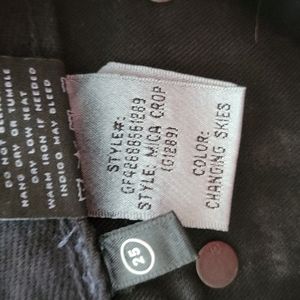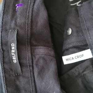 GRLFRND mica cropped in changing skies. Button fly raw hem five pocket construction used pictures taken of aprox measurements. Sold on Revolve