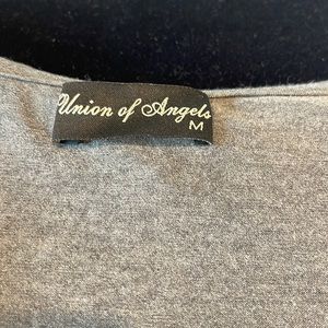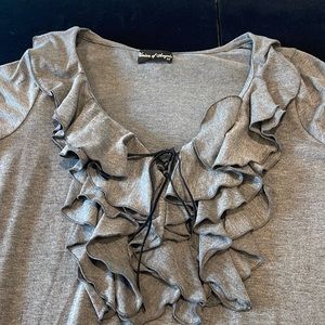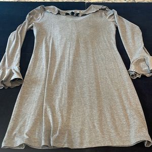 Union of Angels gray ruffle dress with tie, ruffle long sleeves, size M