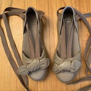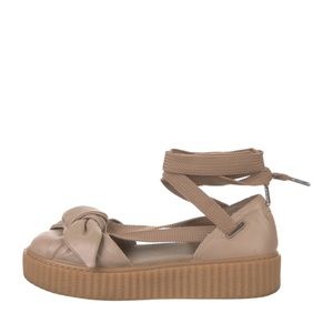 Puma x Fenty By Rihanna Tan Leather Bow Creeper Platform Shoes Women’s Size 9.5