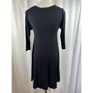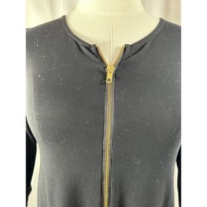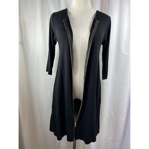 Anthropologie Bel Kazon Front Zip Fit Flare Long Sleeve black dress SMALL pocket