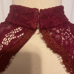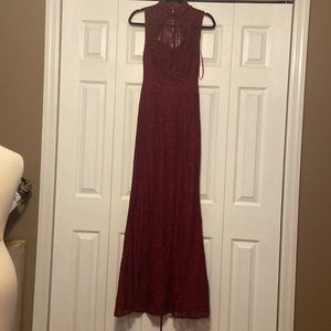 Beautiful red lace gown with high neck and backless. Has a mermaid bottom. Fully lined with bra pads. Worn by my daughter once. Size 2