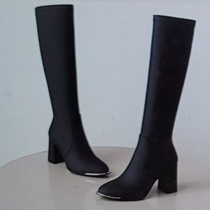 NIB Pointed Toe chunky heel long boots with side zipper wear 8 hours size 10