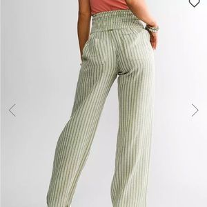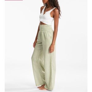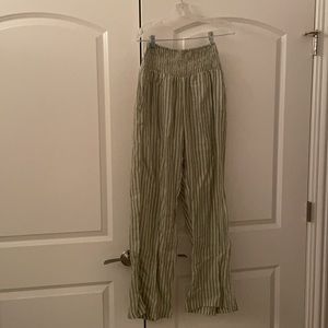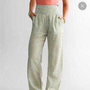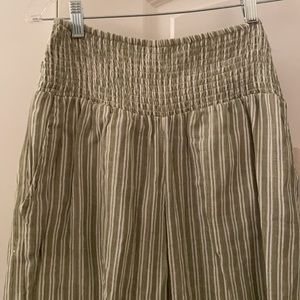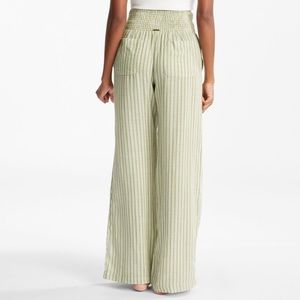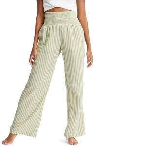Perfect for casual days spent strolling the boardwalk, this pair of wide-leg pants is fashioned with a stripe pattern and smocked waist.