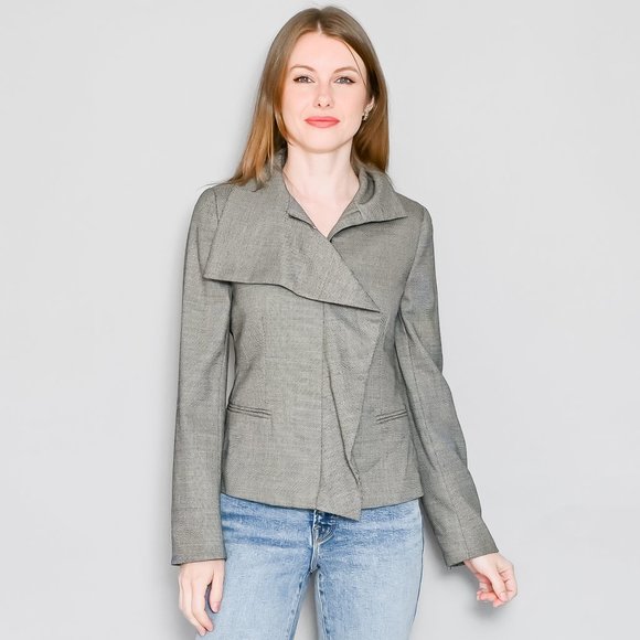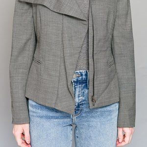 MaxMara gray (black and white woven thread) blazer with moto style zipper closure and collar, zipper cuffs. Made in Italy. Size USA 8.