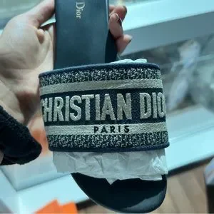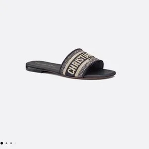 The Dway slide has a timeless and emblematic silhouette. The slide's upper features a deep blue embroidered 'CHRISTIAN DIOR' signature and instantly stands out. The streamlined shoe slips on easily and offers effortless style.