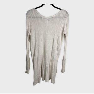 Free People Waffle Knit Thermal Cream Long Sleeve Dress with Raw Edges