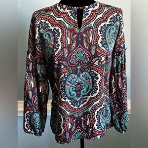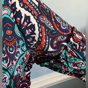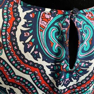 Beautiful Spring Paisley Print with Navy, Teal, Deep Orange, Pale Pink, and White
