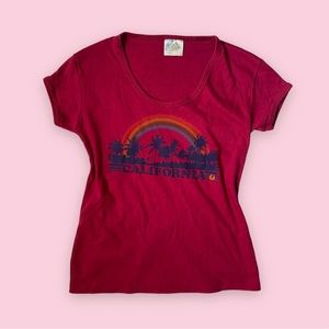 tags - y2k 2000s tee baby tee tshirt teeshirt hot pink california rainbow indie arthoe skater skating vintage