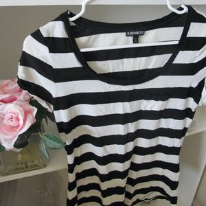 Express Women's Short Sleeve Top Size S. Color: Black & White. Style : Striped; short sleeve with button detail on sleeves; 1 pocket detail on shirt. Smoke/Pet Free home. Bundle & Save! Ships asap. Thank you for looking. EUC