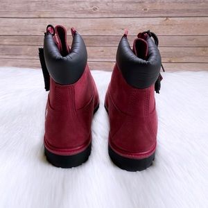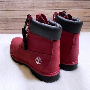 New In Box- Timberland Men’s Premium 6 Inch Waterproof Dark Red Nubuck Leather Boots With Padded Collars, Seam-Sealed Construction, Rustproof Hardware, 400g Insulation And Rubber Lug Outsoles.