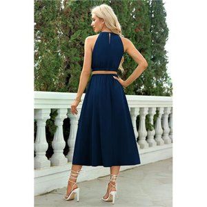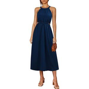 - Design -- Sexy Midi Dress, Relaxed style, Elegant Dress, Sleeveless Halter Neck Sundress, Keyhole Back, Elastic High Waist With Cutout Detail. Flows easily and you can dress up or down for various occasions.