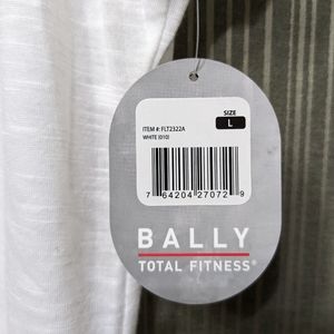 Women's L White Bally Active Wave Total Fitness T Scoop neck, mesh trim, short sleeve, Mesh keyhole cut out in back NWT
