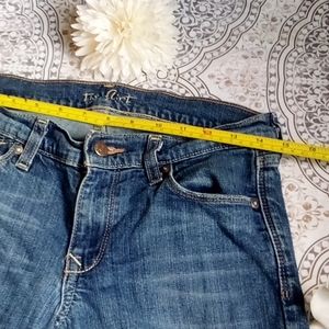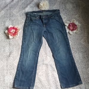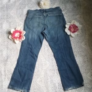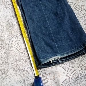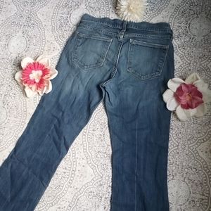cute medium wash slim bootcut Old Navy jeans "The Flirt" line from old Navy. they are size 4 short and the inseam length is 24 inches, the rise is 7 1/2 inches, and the waist is 14 inches laying flat, these are in good preloved condition, but they are in good condition with no signs of wear except in the bottom hem shown in pictures. it's not really bad though. but these are still very cute and desirable jeans in need to be worn, feel free to ask questions