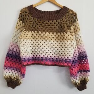 World Market Boho Checker Print Plaid Balloon Sleeve Blouse Size L/XL