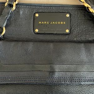 Very unique black and navy blue Marc Jacobs flat chain tote leather, they don’t make them like this anymore! Almost vintage and gently used