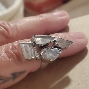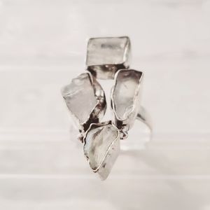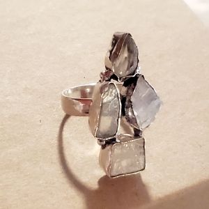 Unique statement ring with natural rough-cut Moonstone Gems Bezel Set into 925 Stamped Sterling Silver