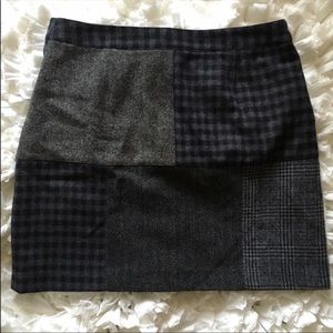 Brooks Brothers Wool Patch Print Skirt. Brand new with tags. Patch work is in and the new style! Perfect to wear this fall or winter with a long sleeve black top, some tights and flats or heels. Colors of navy blue, gray, black. Approx: 19” length.