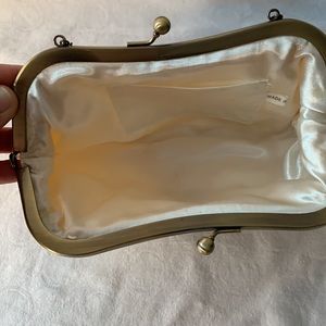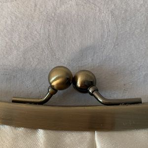 Ivory Satin Clutch Evening Bag Embellished with Bauble Metal Clasp & Chain