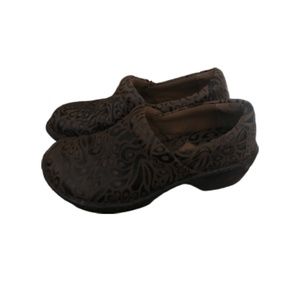 B.O.C. Genuine Leather Brown Floral Print Embossed Mule Slip On Clogs 7.5 38.5