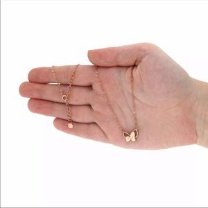 This beautiful cable link necklace is crafted in 925 sterling silver finished with rhodium / white gold, yellow gold or rose gold plating, the necklace is secured with spring ring clasp and complemented with a dainty high polished butterfly pendant.