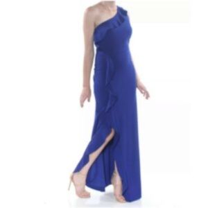 Blue Ruffle Formal Chic one-shoulder Calvin Klein Gown