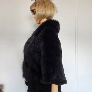 Unbranded black faux fur jacket, shawl fox fur collar, hook and eye closure, short sleeves, tag states XXL.