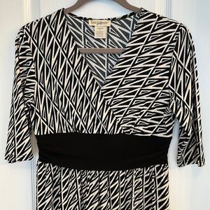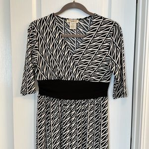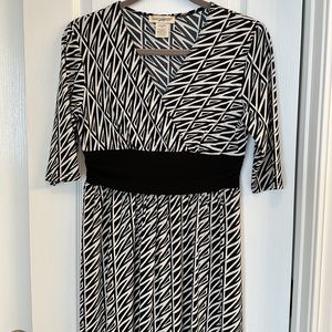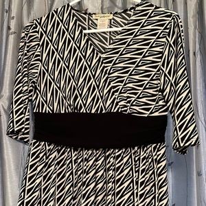Travel Smith Black and Cream Geometric Pattern Stretch Dress Size Small fits Size 6 to 8