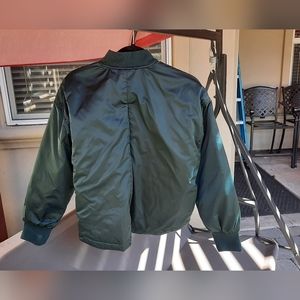 very warm puffer bomber style jacket with a pleat in the back. this jacket has been washed but never used, but it has a couple of small imperfections for some reason ( maybe I bought it from target that way). anyways they aren't really noticeable imo.