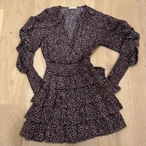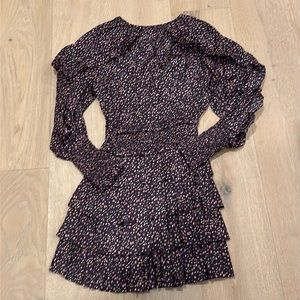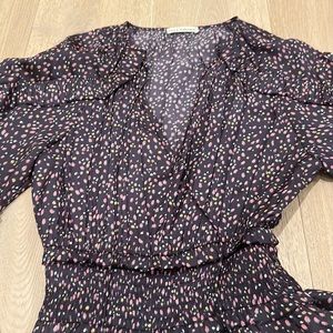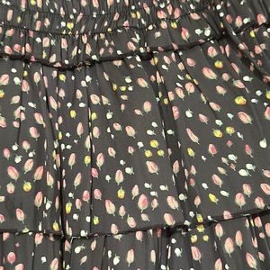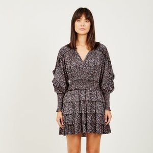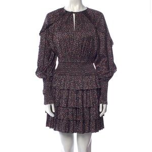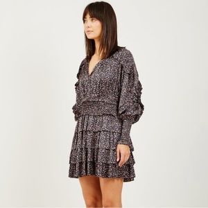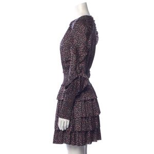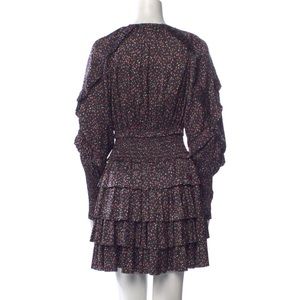 Minidress composed of washed black, pink, and multicolored floral plain-weave. Capturing the label's bohemian feel, this style is detailed with ruffled shoulders and raw edges.