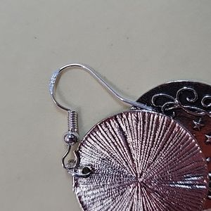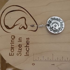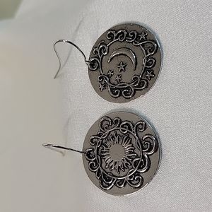 Rustic cut oxidized silver sun and moon medallions on stamped S925 sterling silver wires. Nicely weighted.