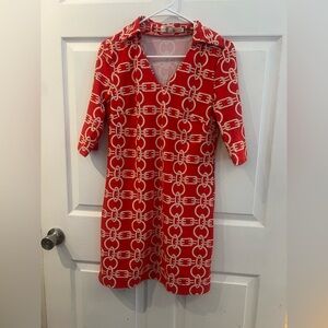 White House black market Geometric print faux wrap v-neck dress sz14